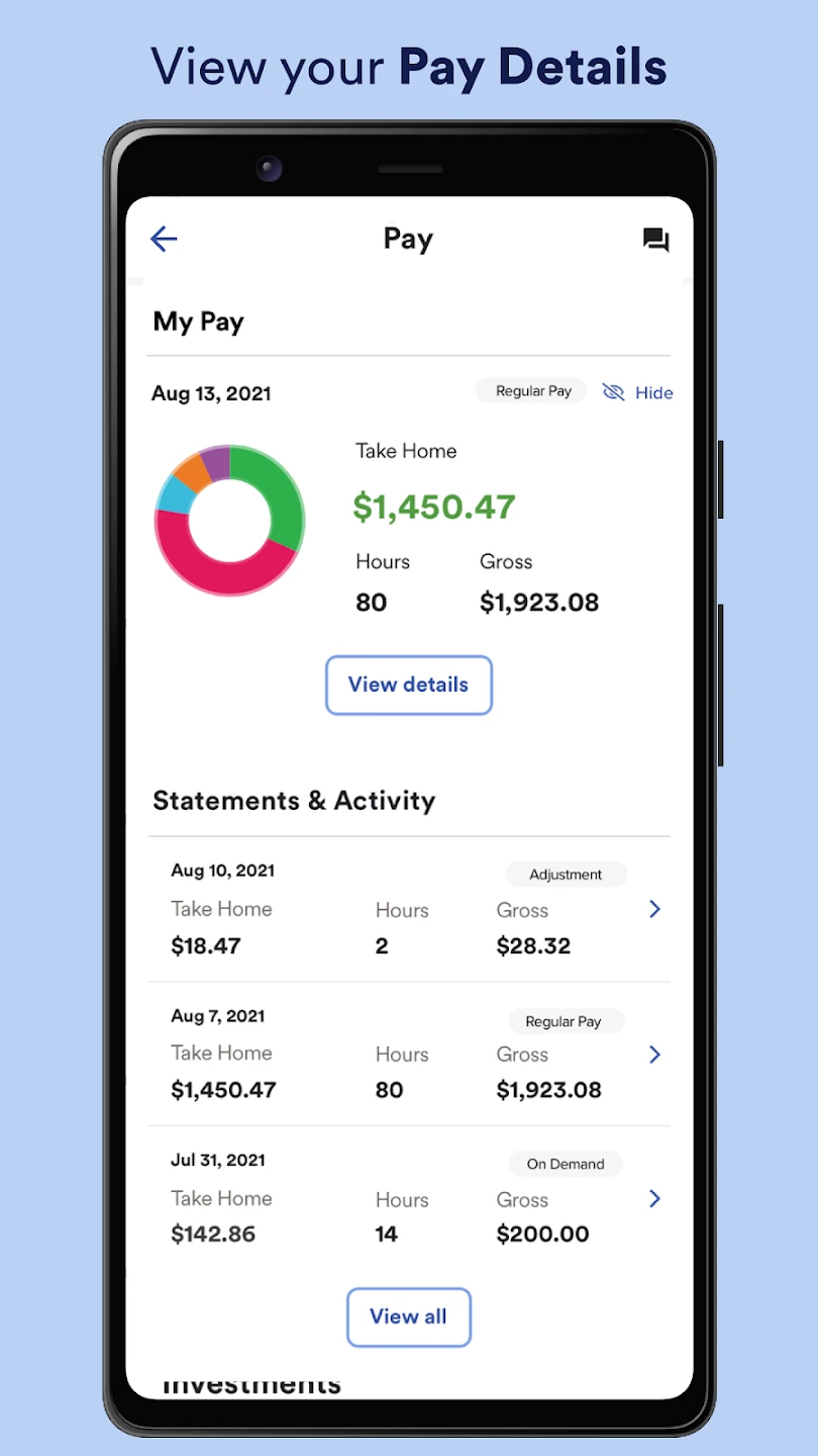 • Employee Directory Access: Access and search for employee information, view pay history, and check benefits enrollment directly from the app. This feature streamlines finding specific employee details, making it much easier to verify information or prepare for payroll runs without navigating through multiple systems.