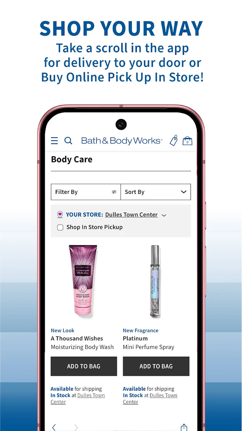 A: The app uses standard mobile payment security protocols, including encryption and secure servers. You can add and manage credit/debit cards, gift cards, or saved accounts through your app profile. All transactions appear on your bank statement as “Bath & Body Works” for easy recognition.