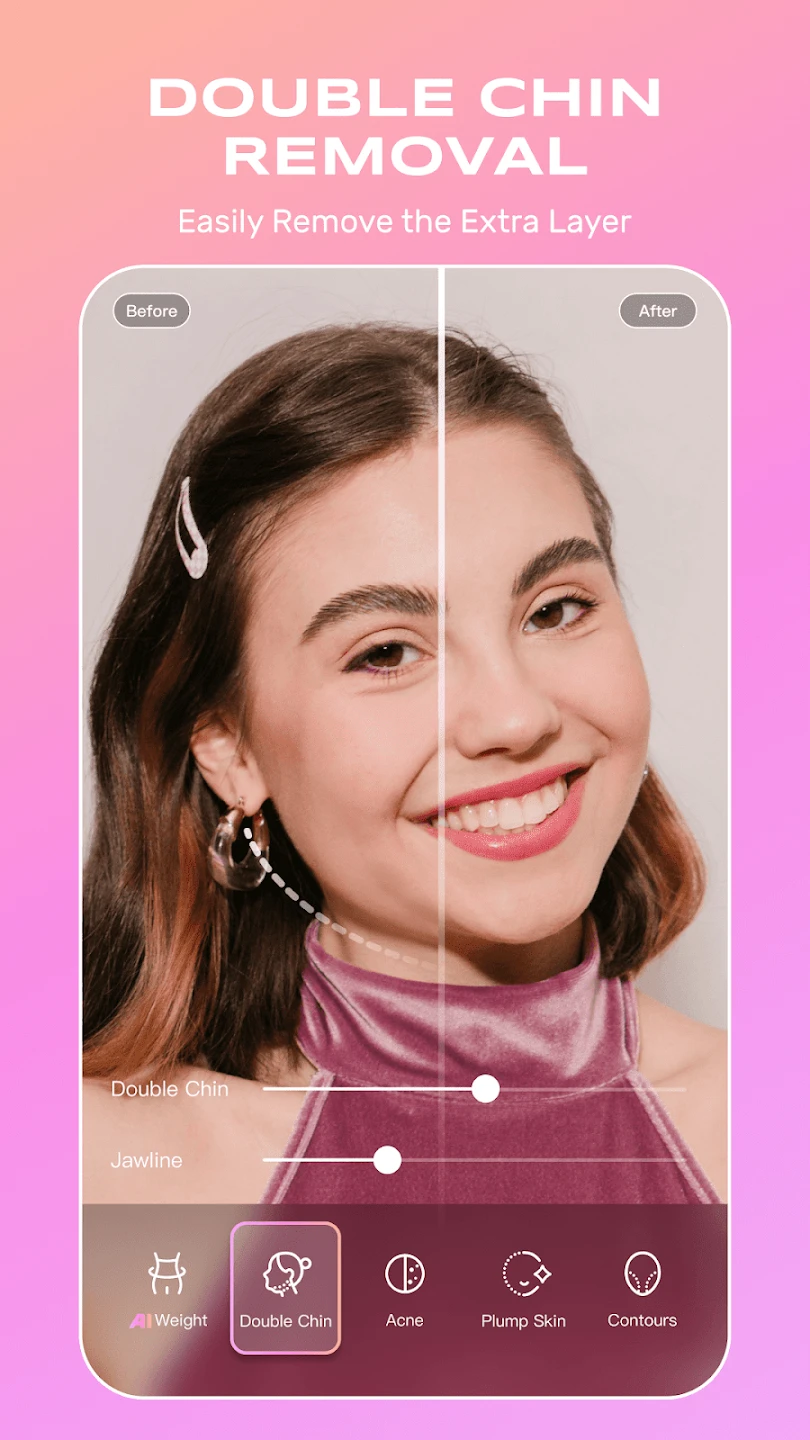 - Creative Face Shaping & Refinement: Utilize AI-driven tools to subtly reshape facial features according to current aesthetic trends or personal preference, such as refining jawlines or subtly adjusting cheek contours. The system intelligently understands facial structures to provide suggestions that look harmonious and natural, enhancing portraits with a single tap for faster, more confident editing.