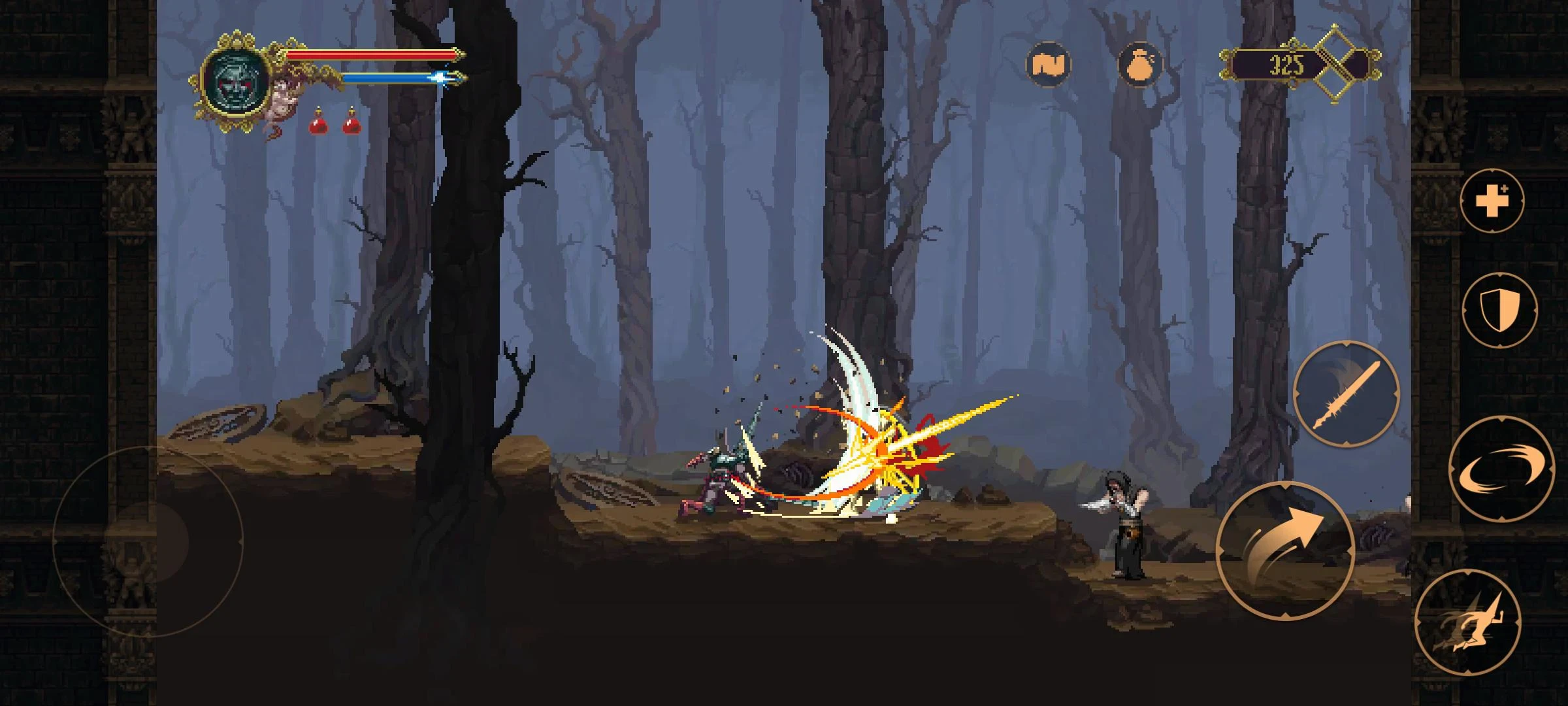 • [Controls or Interface]: Blasphemous utilizes intuitive keyboard controls (arrow keys for movement, spacebar for jumping, specific keys for dodging, rolling, and attacking) or touch controls optimized for mobile platforms, depending on the version. The controls are generally considered easy to grasp but challenging to master; precise timing is crucial. The ease of control lies in its responsive inputs and well-placed checkpoints, though the difficulty often makes mastery a significant challenge.