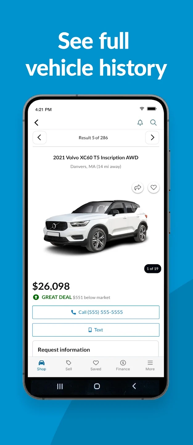 - Market Value Estimates: The app provides real-time data showing whether a listed car’s price is above, below, or right on market value based on recent sales history. This includes details like typical repair costs, expected depreciation, and regional pricing trends, helping you confidently negotiate better deals and avoid overpaying for vehicles.