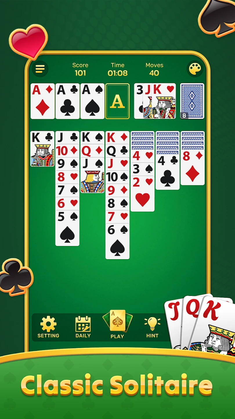 Classic Solitaire : Card Games is a modern digital adaptation of the traditional patience card game, blending the nostalgic charm of classic solitaire with contemporary touch controls. It falls under the strategic card games genre, appealing to both casual players seeking a relaxing pastime and seasoned solitaire veterans craving familiar yet polished gameplay. What makes it interesting are its intuitive interface, smooth animations, and the challenge of building foundation piles from Ace to King while strategically managing seven tableau piles.
