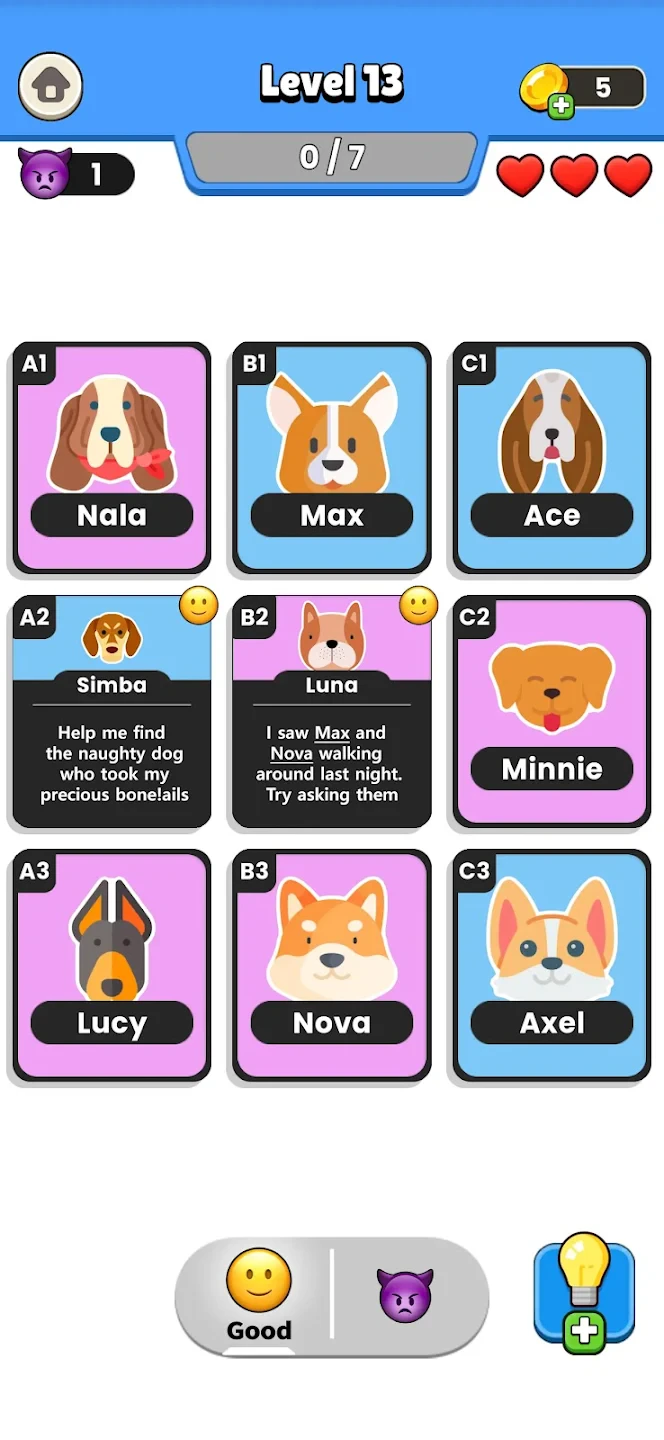 - [Modes or Levels]: Clue Master – Logic Puzzles offers a vast array of standalone puzzles, grouped by theme and difficulty within themed chapters. Players can enjoy both single-player mode against the clock and competitive multiplayer modes. The game features multiple difficulty settings, ensuring long-term replayability and catering to both beginners and experienced logic puzzle enthusiasts.