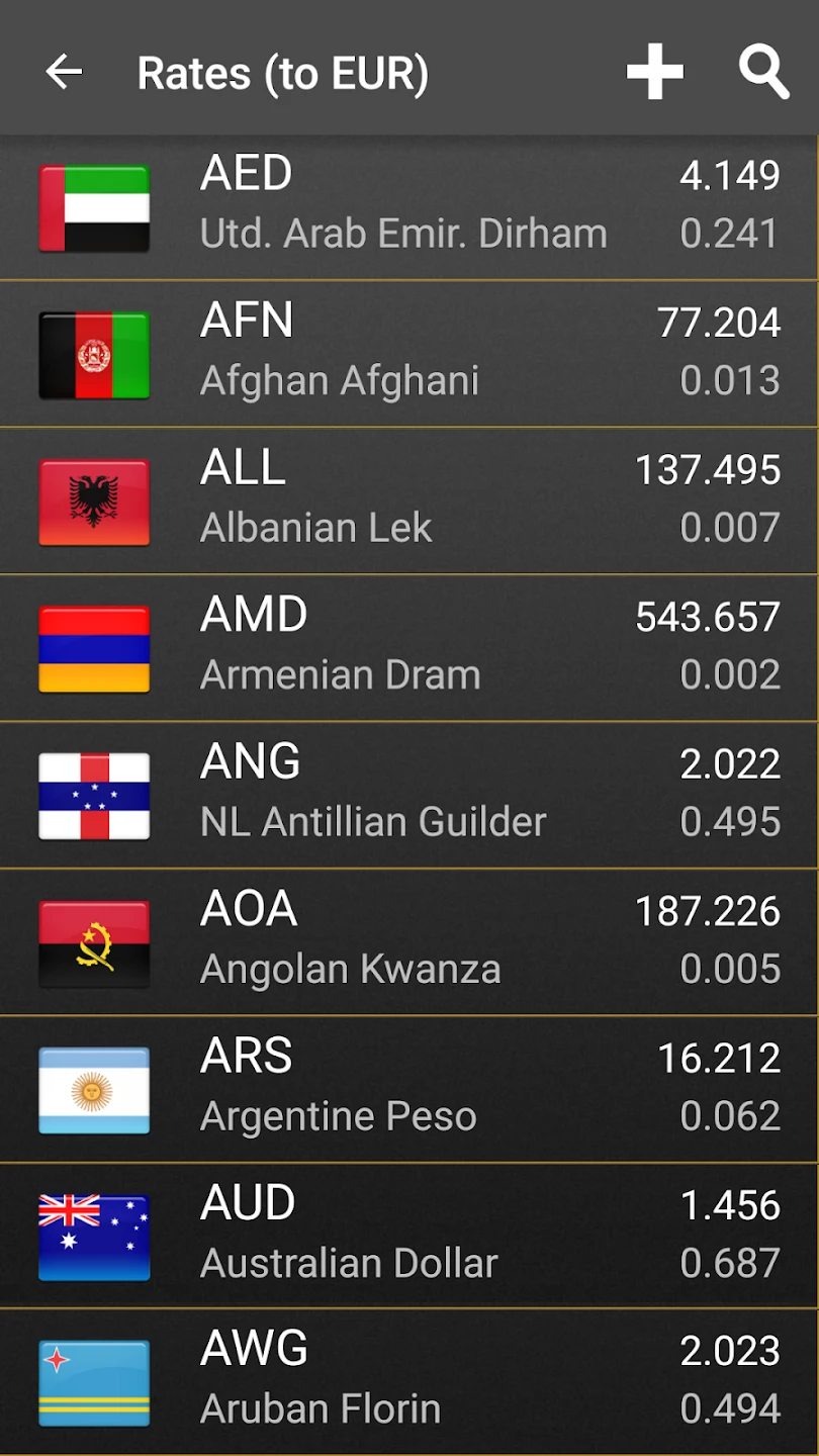 • Budgeting and Goal Tracking: Create spending targets for specific categories, with the app automatically suggesting currency conversions based on planned expenditures. This advanced integration supports financial discipline, making Currency Converter Plus ideal for managing multi-currency budgets seamlessly.