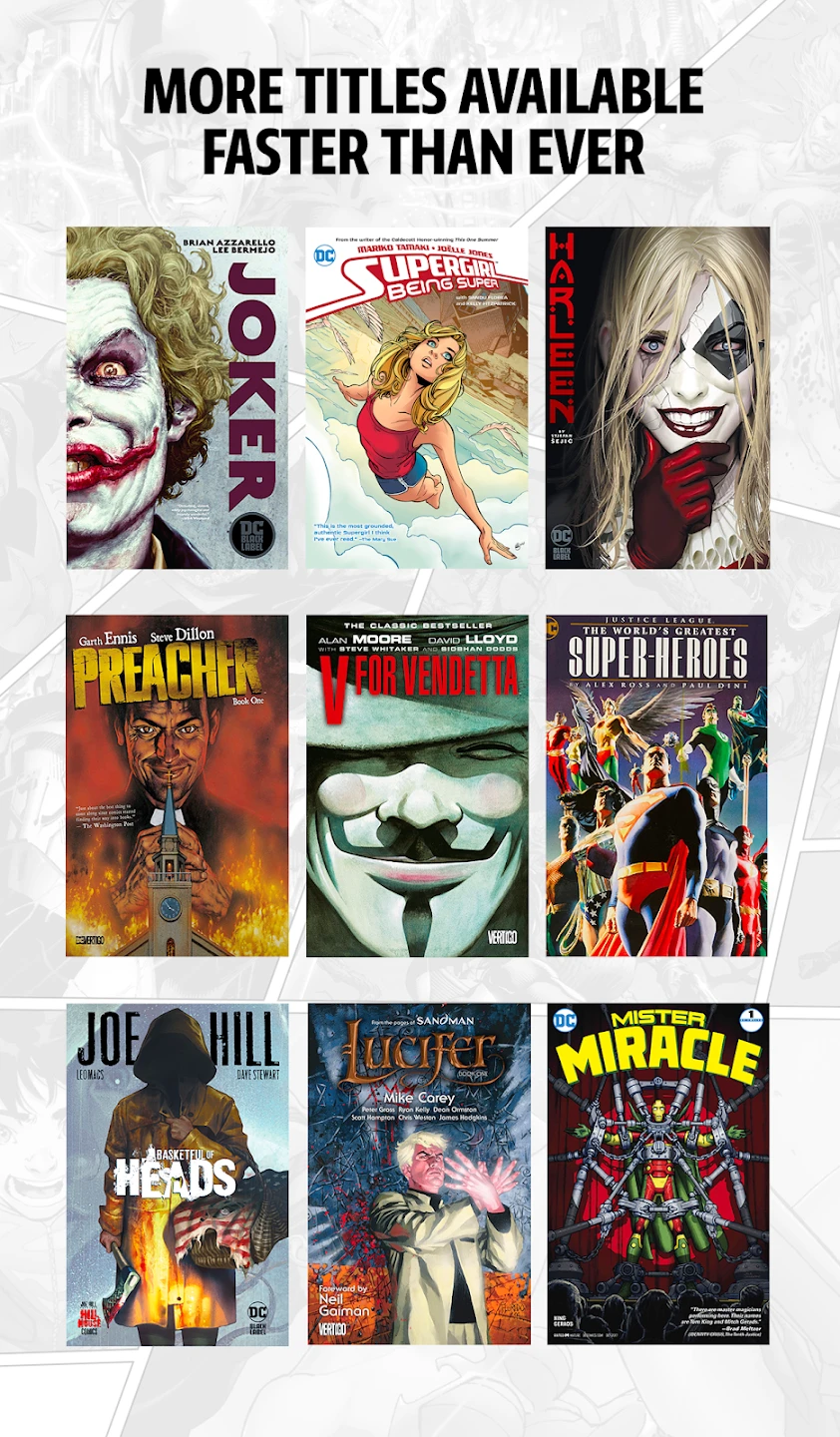- Comprehensive Comic Library: Read comics across various formats including digital comics, trade paperbacks, and back issues from nearly all DC publications in one place. This allows users to build their digital collection and discover new titles they might not have encountered otherwise, enhancing their fandom experience significantly.