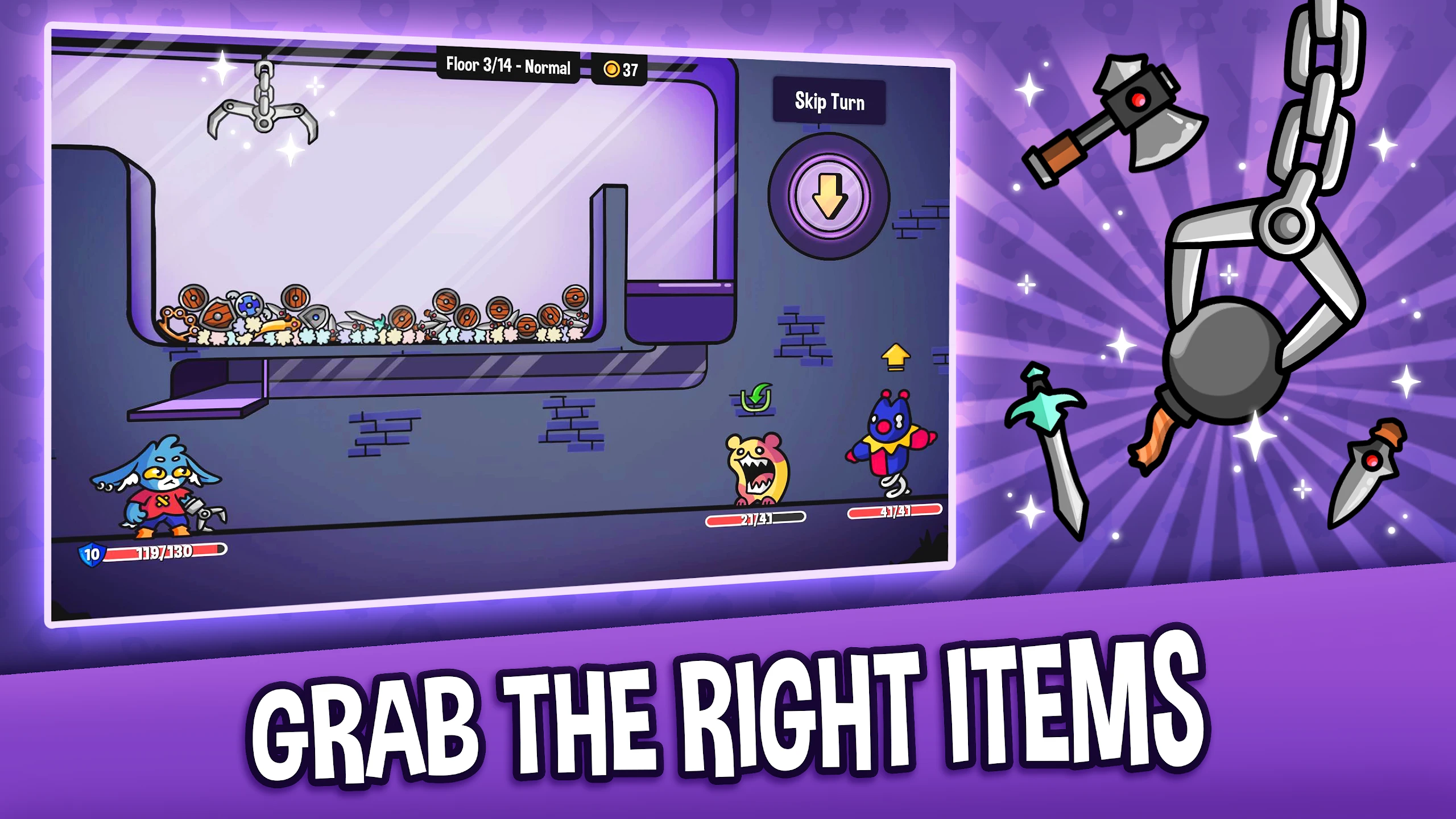 • [Modes or Levels]: Play solo in procedurally unique dungeons or challenge friends in online co-op mode; character progression unlocks hundreds of unique paths and endings, ensuring you’ll never play Dungeon Clawler the same way twice.