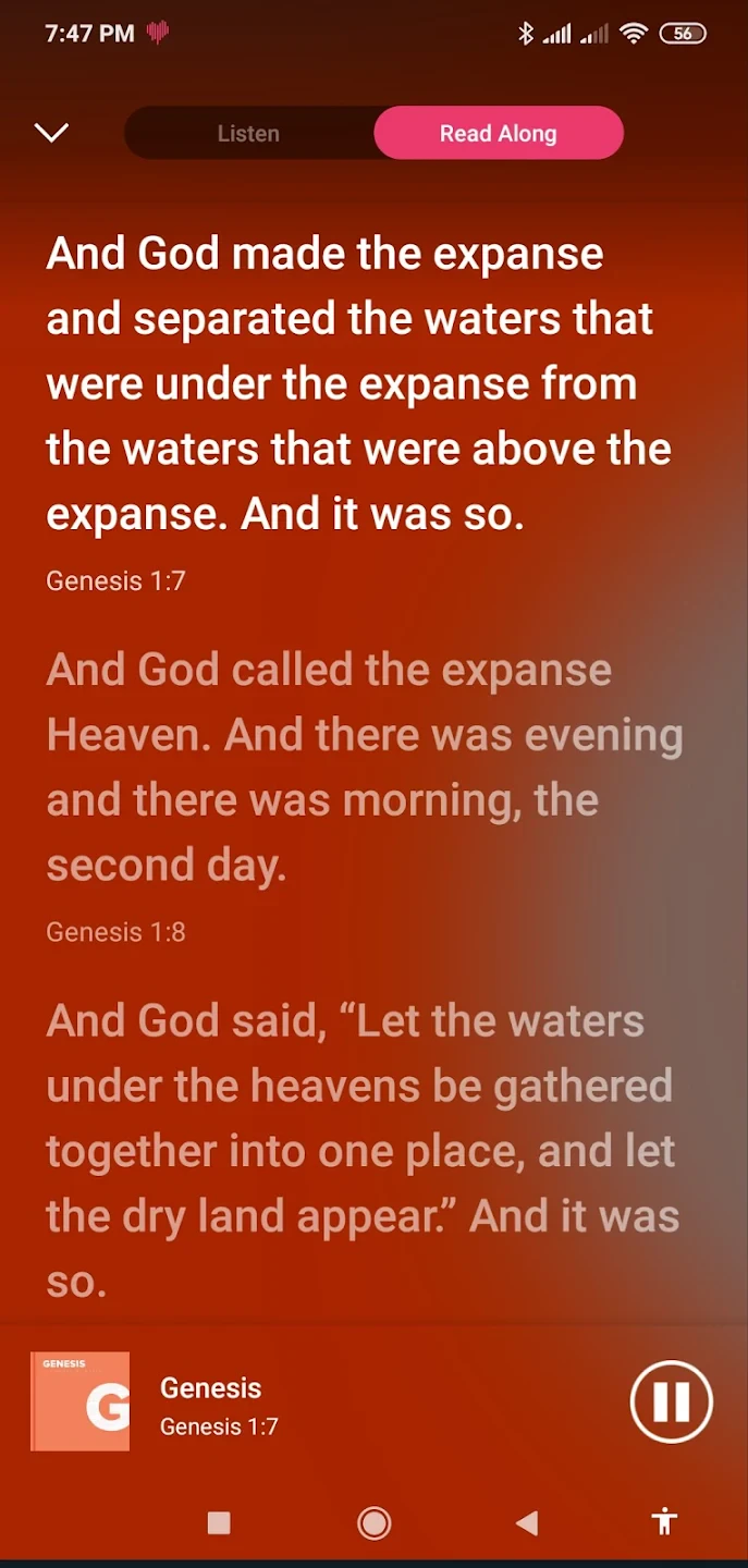 - Basic Audio Control: Provides standard volume adjustment and playback functions (play, pause), allowing users to manage the Dwell: Audio Bible playback easily while potentially engaged with other activity like driving or working. Key is readability – showing the text alongside audio function.