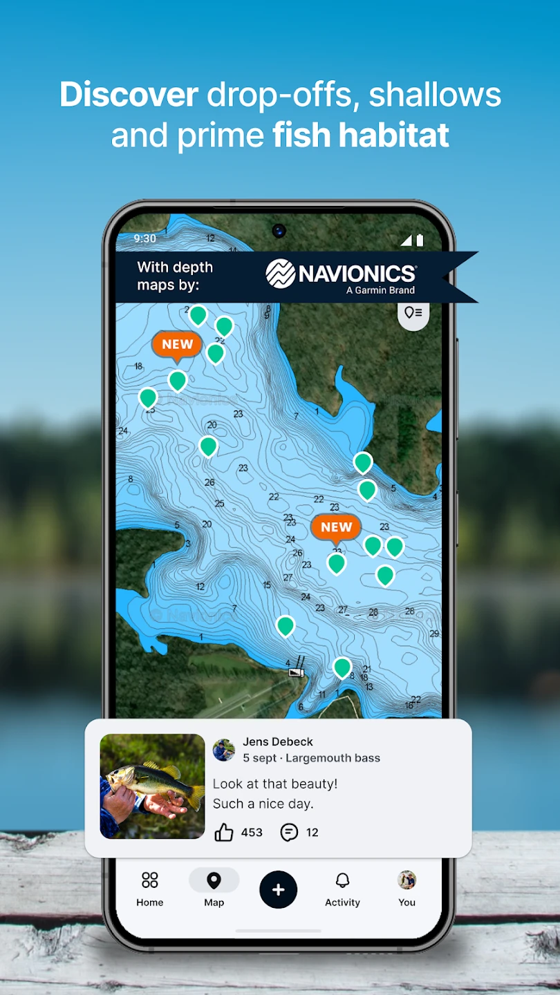 - Offline Mapping: For those epic trips far from signal? No problem. Many regions offer pre-downloaded maps so you can navigate, reference depth contours, explore locations, and even see FBC sightings, all without being online.