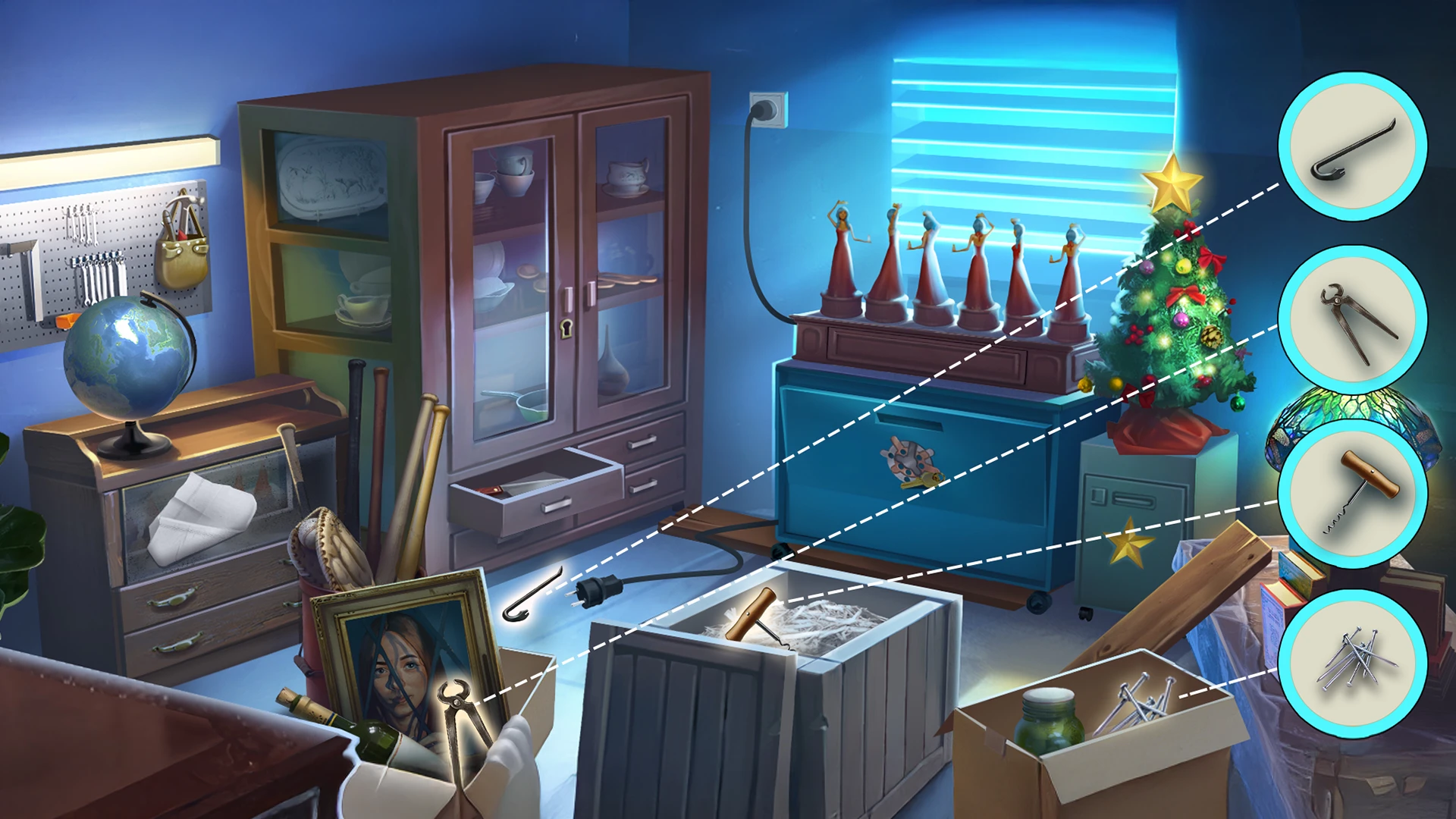 • Step 2: Explore the initial room by dragging your view around, tapping objects for closer examination, and clicking interactive items. Your objective is to find three hidden clues within the time limit.