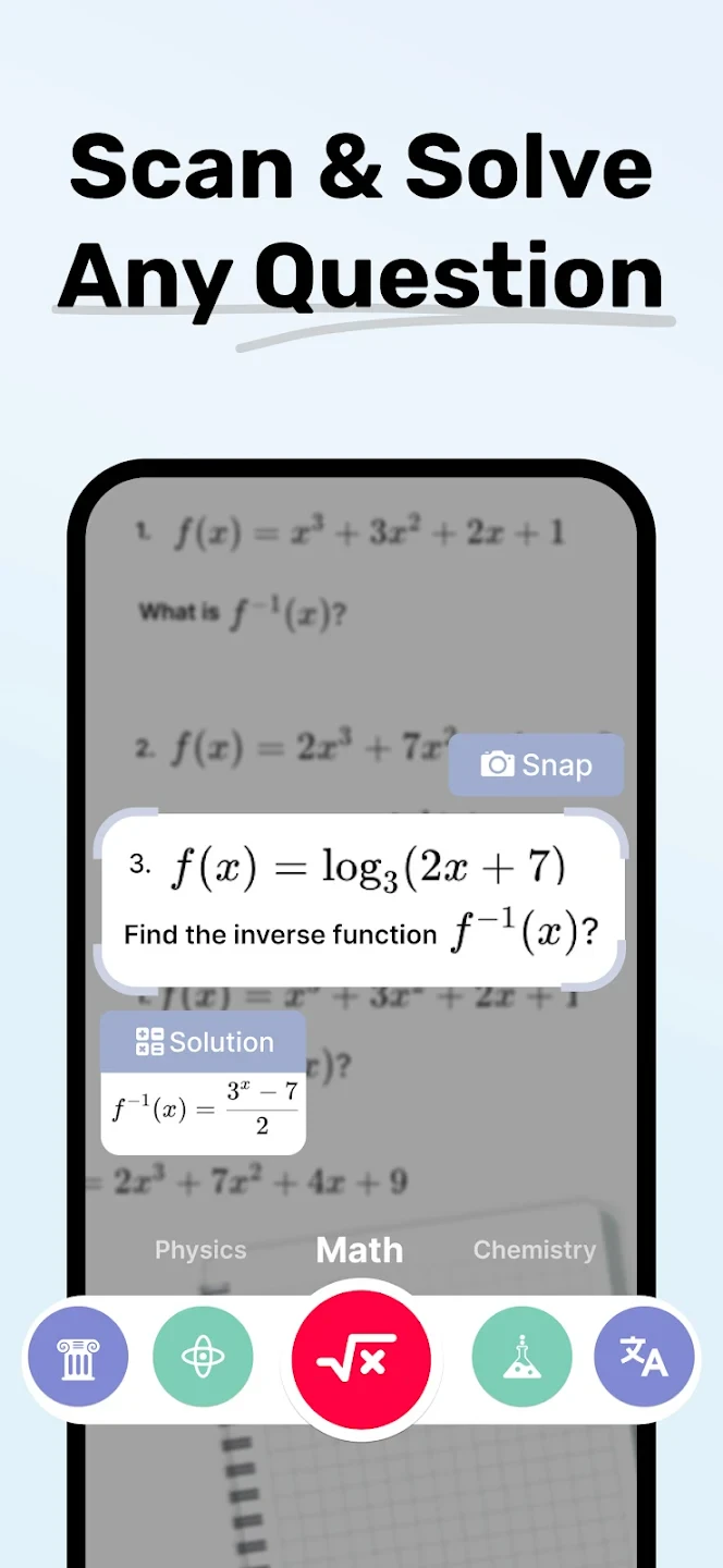 - Smart Math Solver: Instantly solves math problems from any textbook or worksheet with detailed step-by-step breakdowns. For example, struggling with quadratic equations? Simply scan your problem, and the app shows the solution process, explaining why each calculation works. It transforms abstract math concepts into digestible lessons.