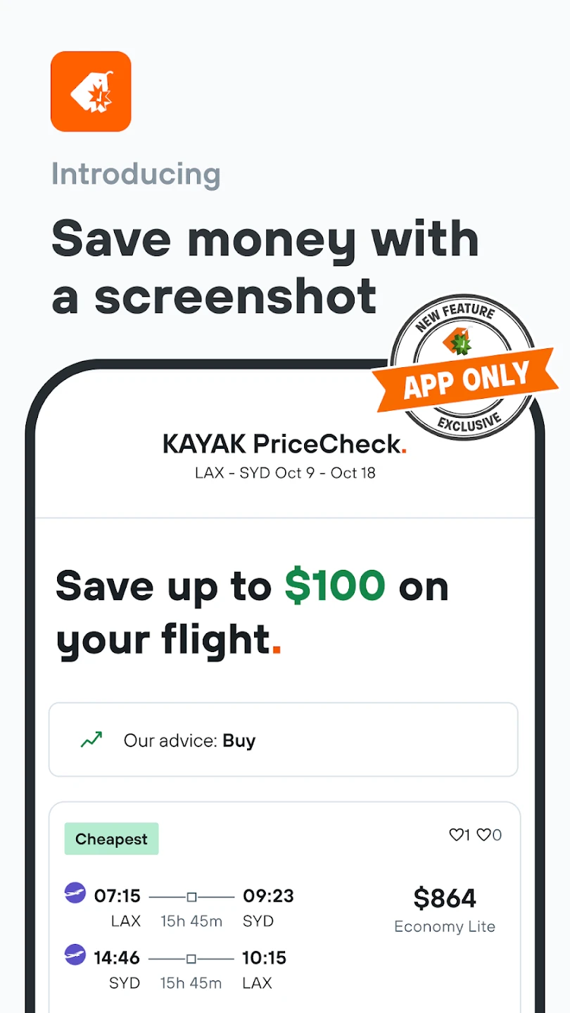 - Mobile App Functionality & Offline Access: Plan and manage your entire trip on the go using the KAYAK mobile app; compare prices, save itineraries, and book directly. For situations with limited internet connectivity, the ability to view previously saved results and book confirmations offline is invaluable, ensuring you can access critical trip information anytime, even without live internet access.
