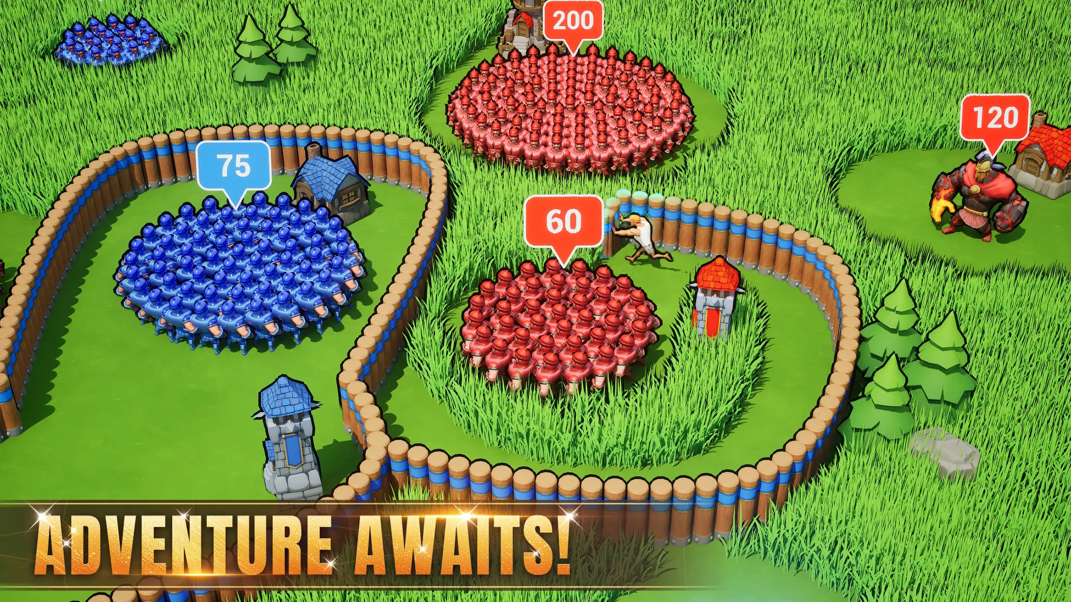 • Visuals or Art Style]: The game boasts vibrant anime-style character designs with dynamic particle effects for magical abilities. Descriptive visuals include detailed castle environments with destructible terrain, animated siege weapons, and stylized troop units with unique movement animations.