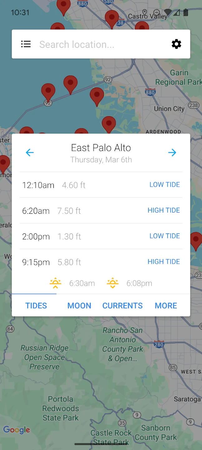 - Interactive Tide Charts & Graphs: Users can switch between table views and detailed chart views, providing a visual representation of tide heights and times over a selected period, which is particularly helpful for identifying patterns or optimal times for activities like saltwater fishing or beach access.Detailed graphs offer intuitive visualization of complex tide cycles.