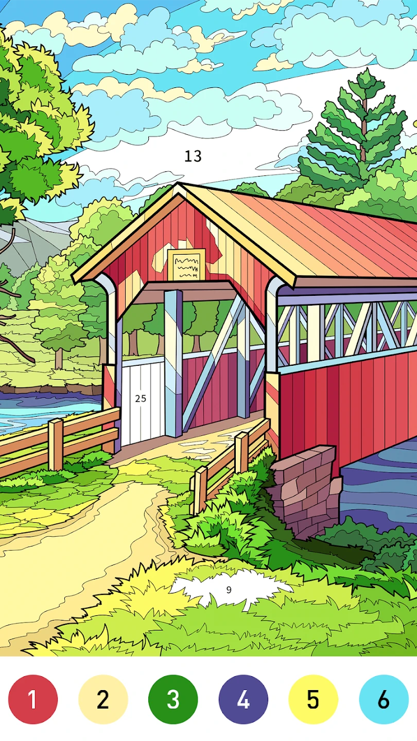 - [Core Gameplay Loop]: Players are presented with an image outlined in sections, each marked with a specific number. They must select the corresponding color from a provided palette and fill in the section using intuitive touch controls, aiming to complete the entire image accurately and efficiently.