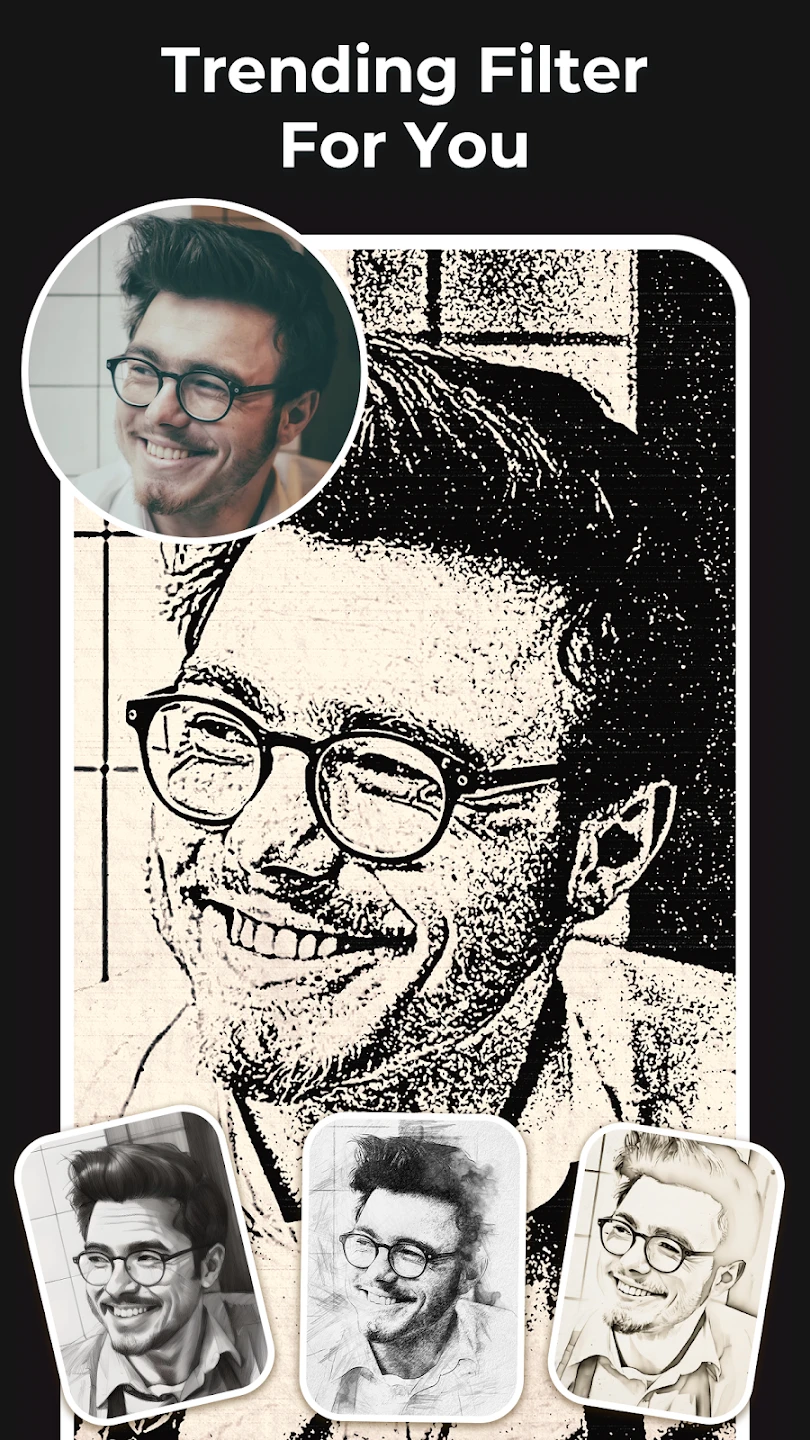 • High-Quality Photo to Pencil/Sketch Conversion: Instantly transforms your images into realistic or stylized pencil and charcoal sketches, providing a powerful way to see your photos reimagined as drawings with just a few clicks.