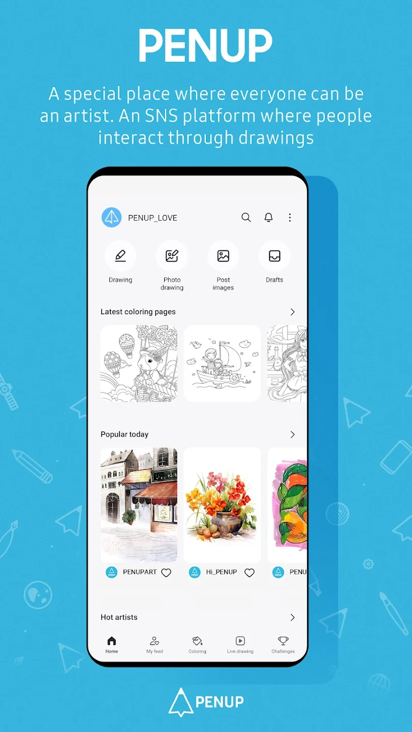 PENUP – Drawing-sharing SNS is an innovative online community platform designed exclusively for artists, illustrators, and sketchers. It enables users to create digital artwork, share their creations instantly with the community, and engage in direct interactions using integrated tools and commenting features.