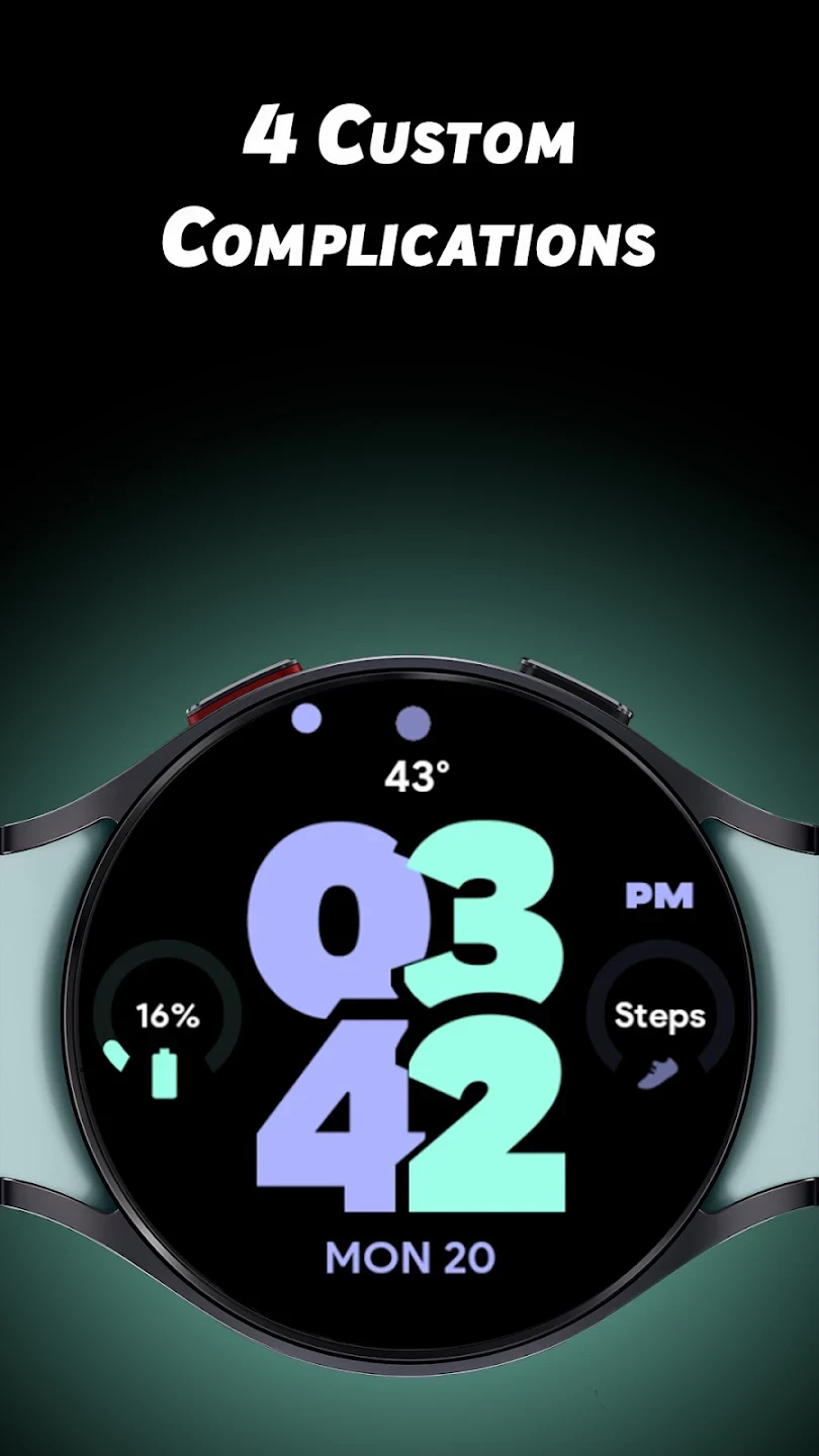 • Seamless Smartphone Integration: Directly utilizes watch complications and data sources from the companion smartphone, offering quick glance access to notifications, health data (steps, heart rate), app cards, and more without needing additional apps or widgets. It saves valuable taps by bringing relevant information directly to the watch face, improving daily convenience.