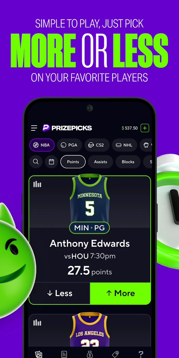 - Modes or Levels: The game primarily offers a single-player fantasy league mode where you compete against other PrizePicks users for real cash prizes. Weekly tournaments and season-long leagues add depth through different prize pools. The core mechanic of lineup management and live performance tracking ensures high replayability as you aim to build the most winning roster.