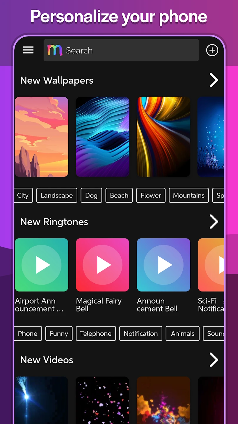 - Trending & Featured Recommendations: Discover popular ringtones and wallpapers that are currently trending or featured by the app. This helps users find inspiration and popular choices they might not have known to search for themselves, enhancing discovery and keeping content relevant.