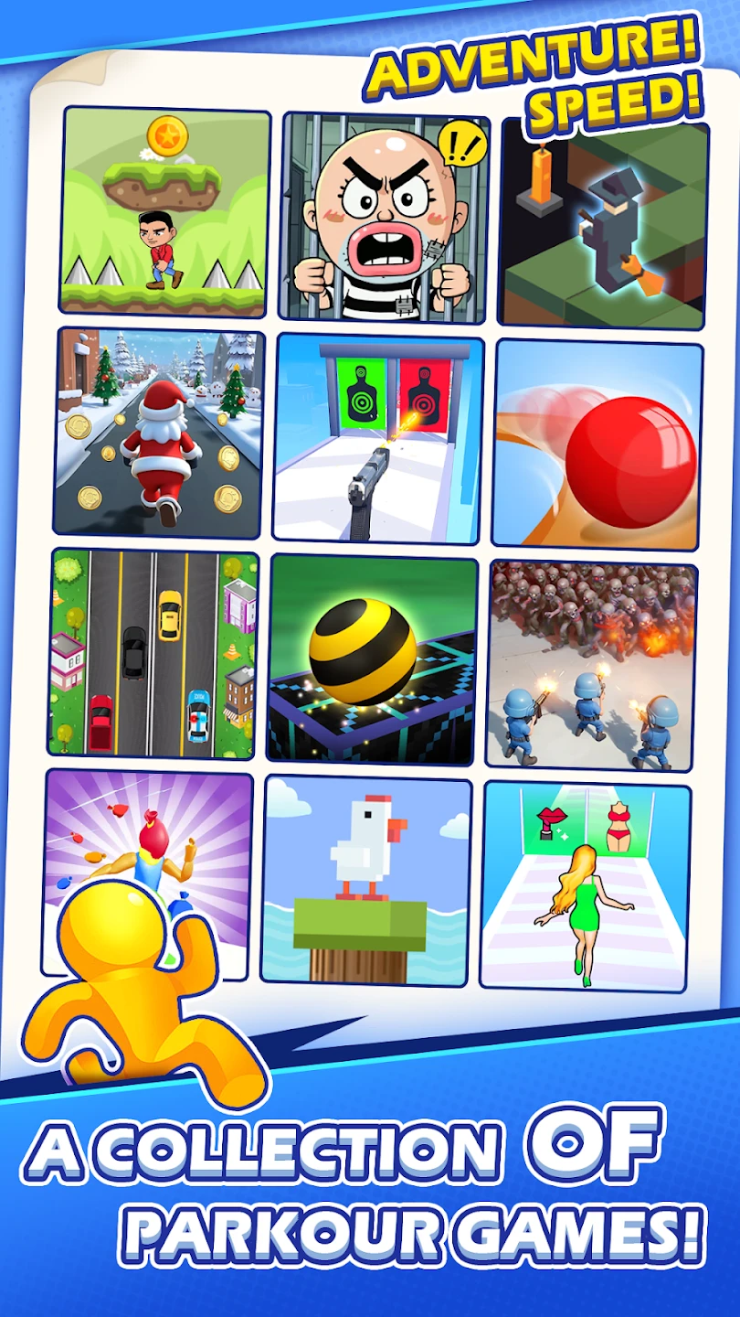 - [Core Gameplay Loop]: The core experience involves guiding your character through a series of obstacles using touch controls to perform precise jumps, wall runs, and flips. Players must react quickly to navigate gaps, avoid hazards, and collect power-ups as they race through each stage, with the goal of achieving the highest score possible.