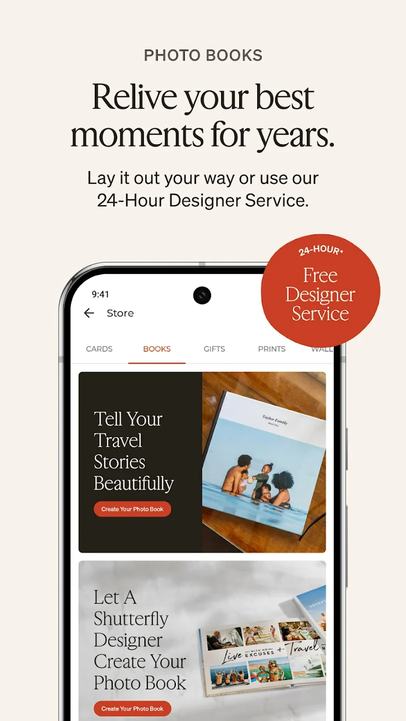 This service focuses primarily on photo books, greeting cards, and basic photo printing. Known for sleek minimalist designs and eco-friendly packaging options. |