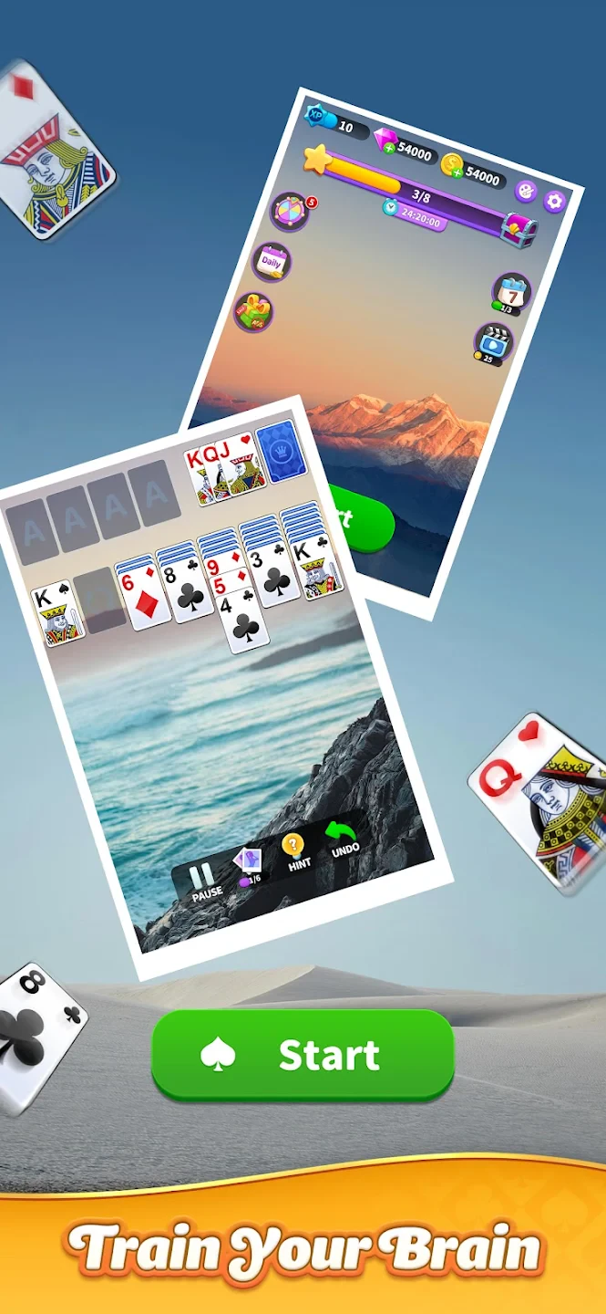 • [Customization or Power-ups]: Players can collect achievements, unlock premium card themes, use temporary power-ups (like undo or shuffle) from an in-game shop, and progress through levels to earn rewards that motivate ongoing play.
