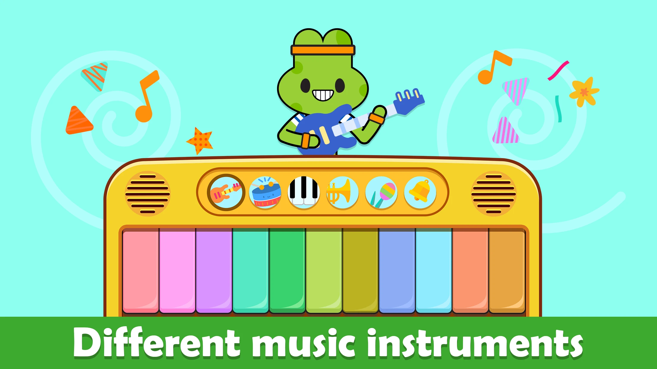 - Visuals or Art Style: The game features bright, cartoonish graphics with simple character designs and playful animations, utilizing rounded shapes, bold primary colors, and friendly animal-themed piano keys to create an inviting and non-intimidating environment that appeals specifically to its young target audience while maintaining clean visual design.