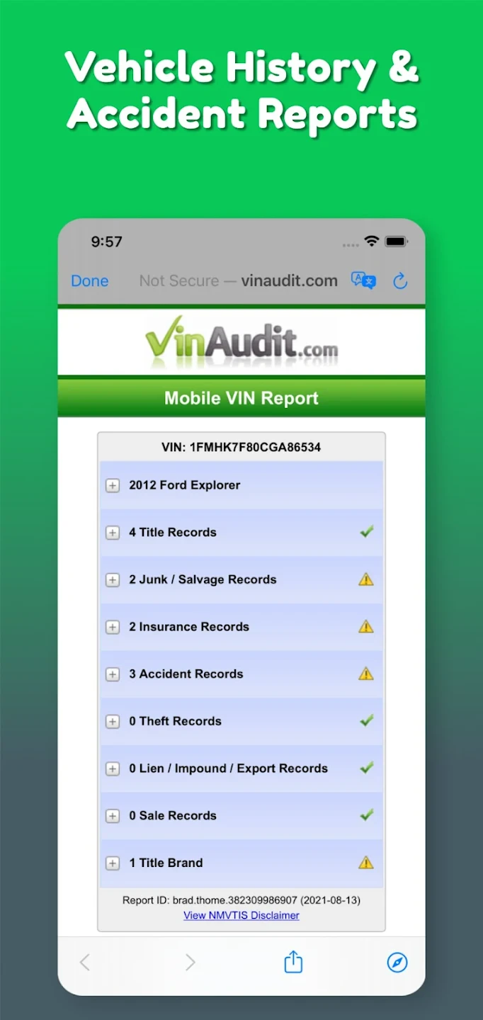VIN Check Report for Used Cars App Download